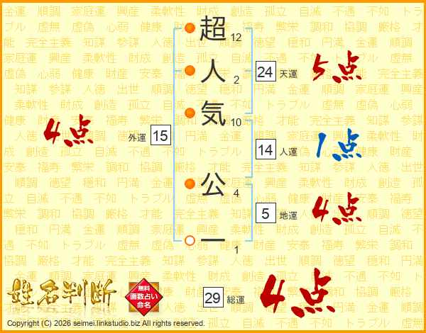 超人気公一さんの総運は29画の4点!