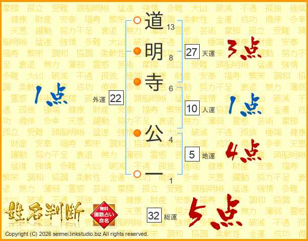 道(13画)明(8画)寺(6画) 公(4画)一(1画)