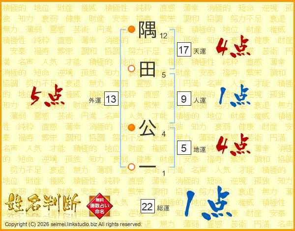 隅田公一さんの天運は17画の4点!