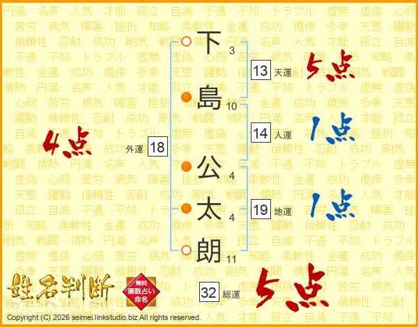 下島公太朗さんの総運は32画の5点!