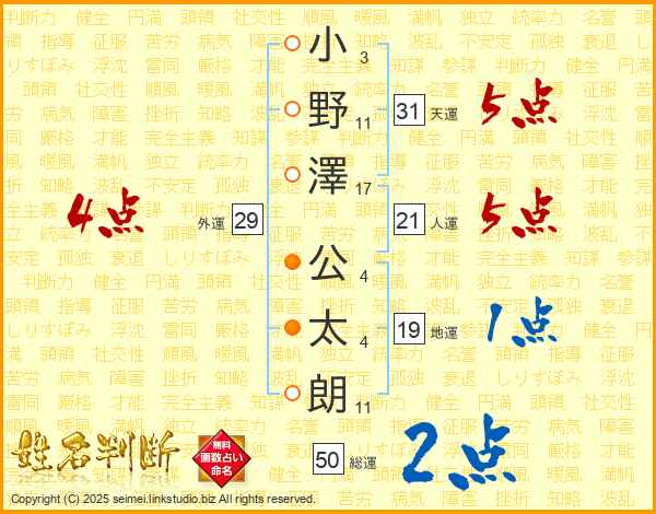 小野澤公太朗さんの天運は31画の5点!