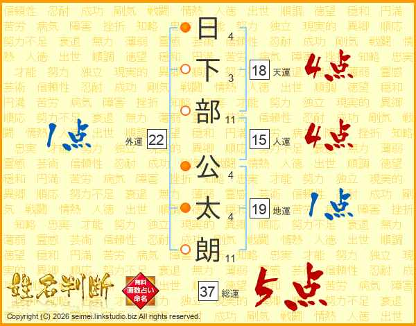 日下部公太朗さんの総運は37画の5点!