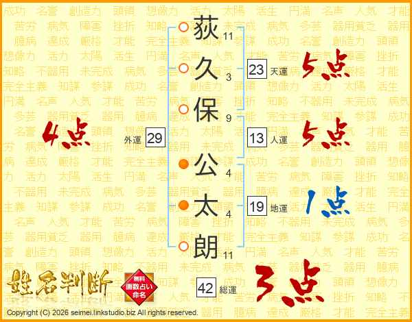 荻久保公太朗さんの人運は13画の5点!
