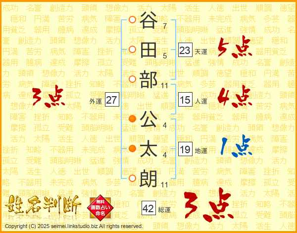 谷田部公太朗さんの天運は23画の5点!