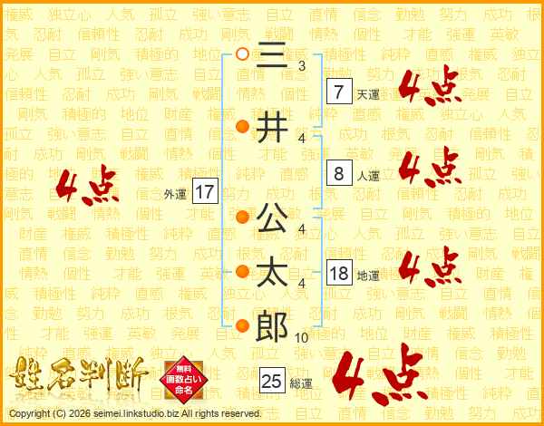 三井公太郎さんの総運は25画の4点!