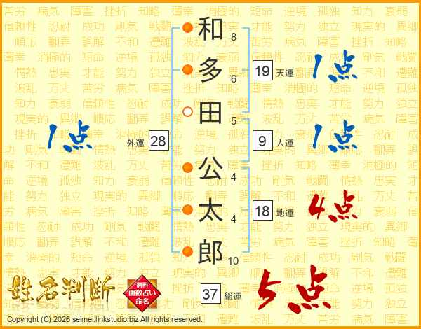 和(8画)多(6画)田(5画) 公(4画)太(4画)郎(10画)