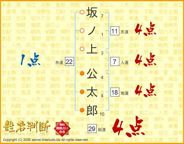 坂ノ上公太郎さんの総運は29画の4点!
