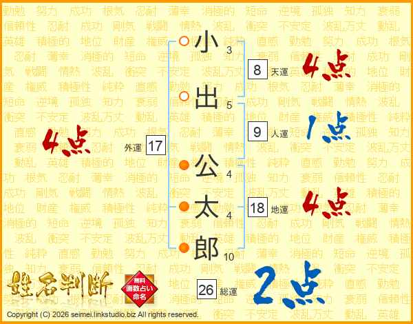 小(3画)出(5画) 公(4画)太(4画)郎(10画)