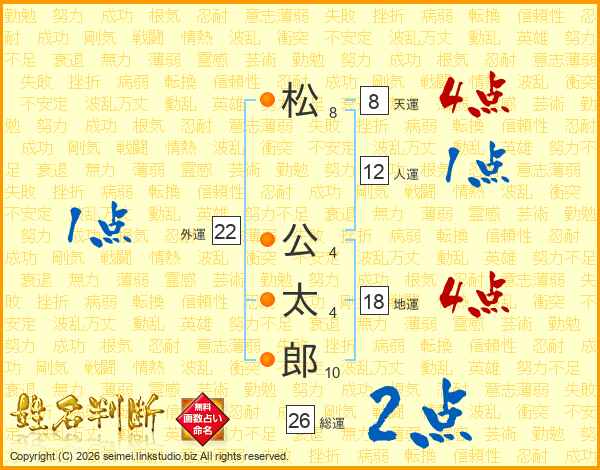 松公太郎さんの総運は26画の2点!