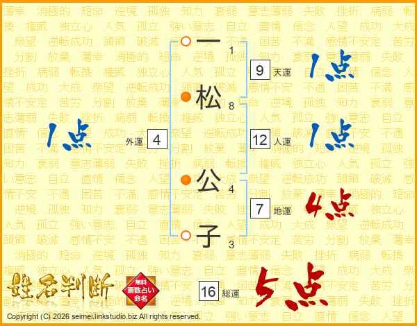 一松公子さんの地運は7画の4点!
