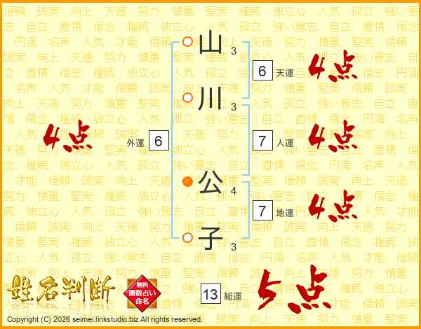 山川公子さんの総運は13画の5点!