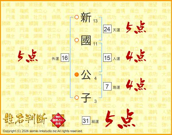 金運 順調 家庭運 興産 柔軟性 財成 創造
