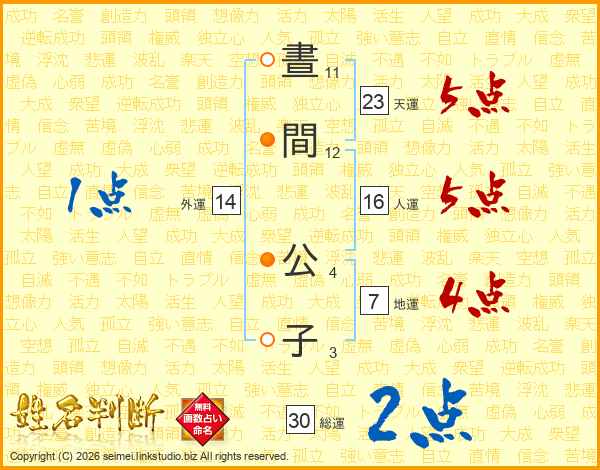 晝間公子さんの天運は23画の5点!