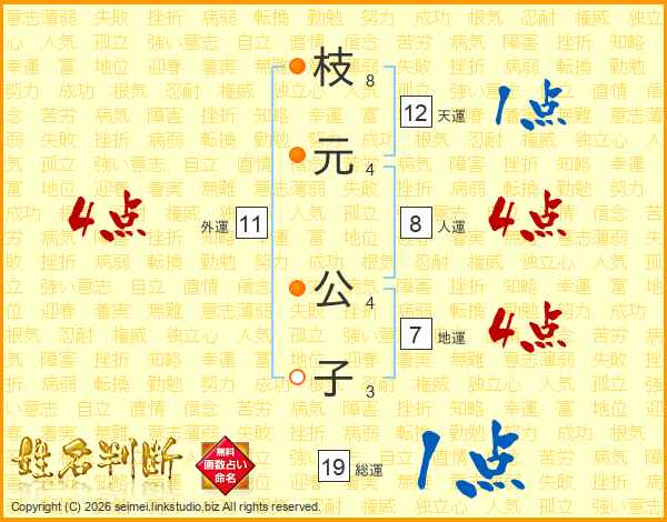 枝(8画)元(4画) 公(4画)子(3画)
