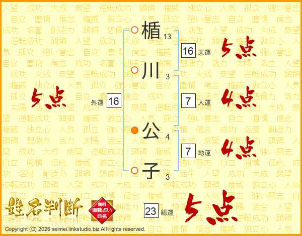 楯川公子さんの外運は16画の5点!
