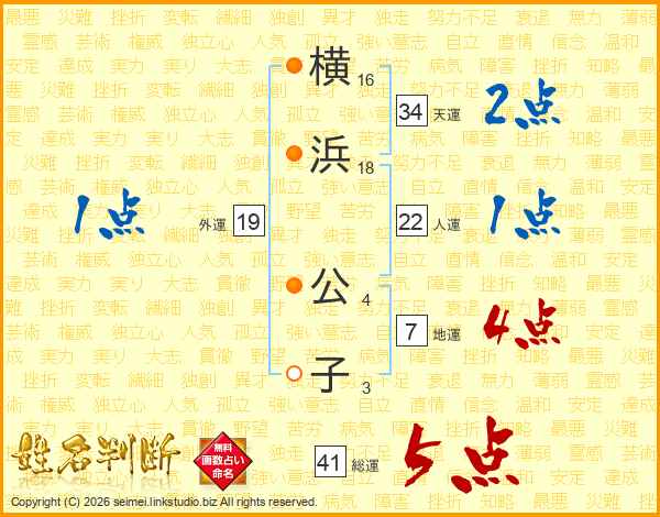 横浜公子さんの総運は41画の5点!