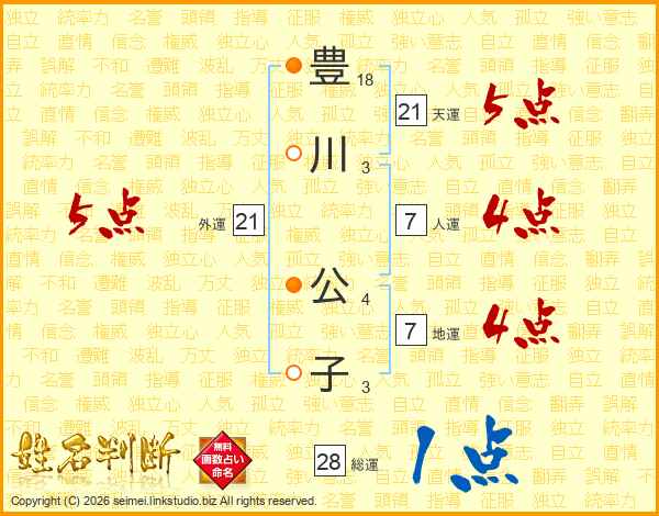 豊川公子さんの外運は21画の5点!