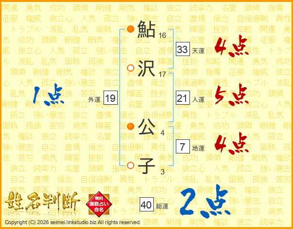 鮎沢公子さんの天運は33画の4点!