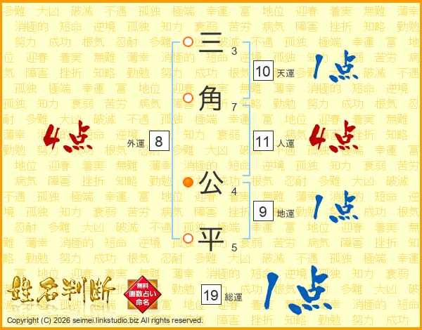 三角公平さんの人運は11画の4点!