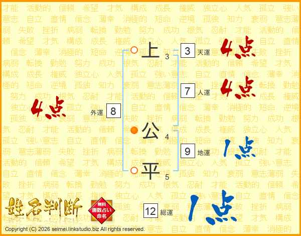 上公平さんの天運は3画の4点!