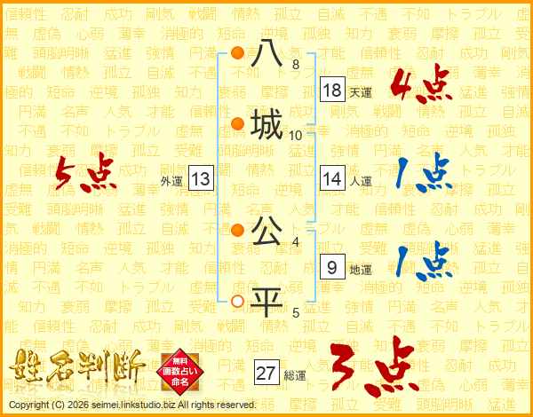 八城公平さんの天運は18画の4点!