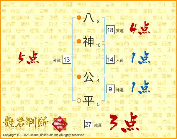八神公平さんの総運は27画の3点!