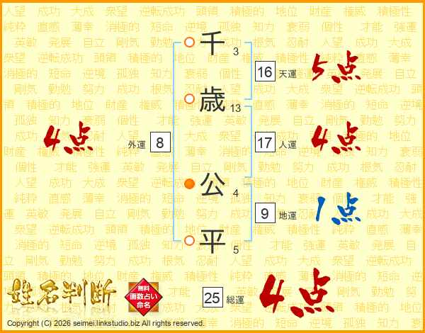 千歳公平さんの総運は25画の4点!