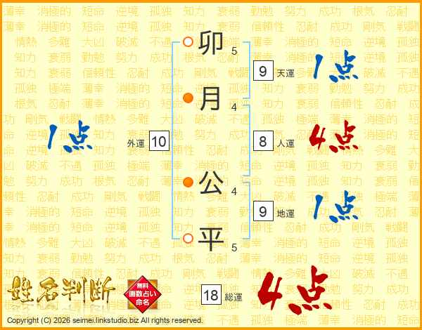 卯月公平さんの総運は18画の4点!