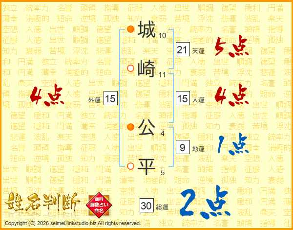 城崎公平さんの総運は30画の2点!