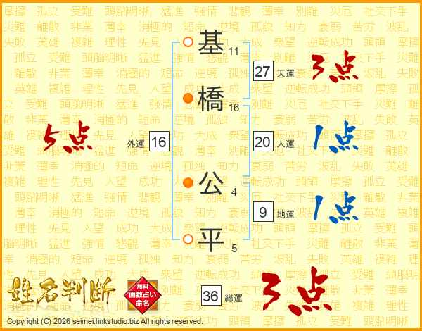 基橋公平さんの総運は36画の3点!