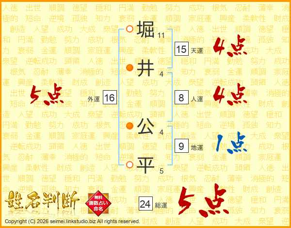 堀井公平さんの総運は24画の5点!