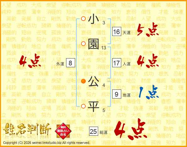 小園公平さんの総運は25画の4点!