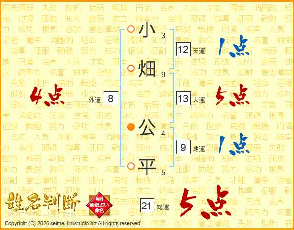 小畑公平さんの総運は21画の5点!