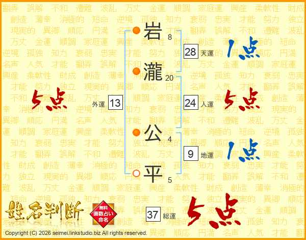 岩瀧公平さんの総運は37画の5点!