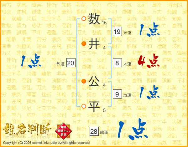数井公平さんの総運は28画の1点!