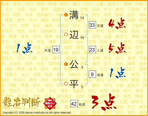 溝辺公平さんの天運は33画の4点!