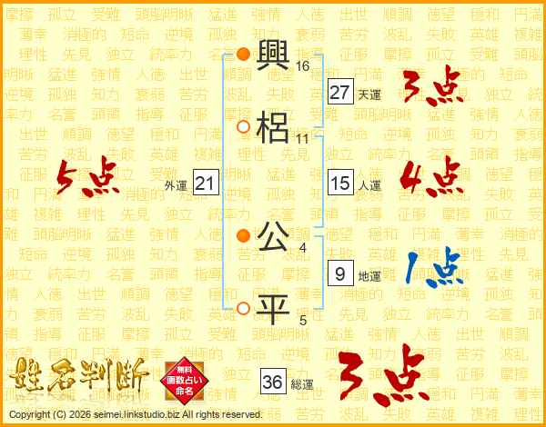 興(16画)梠(11画) 公(4画)平(5画)