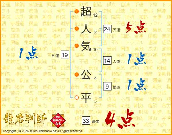 超人気公平さんの総運は33画の4点!