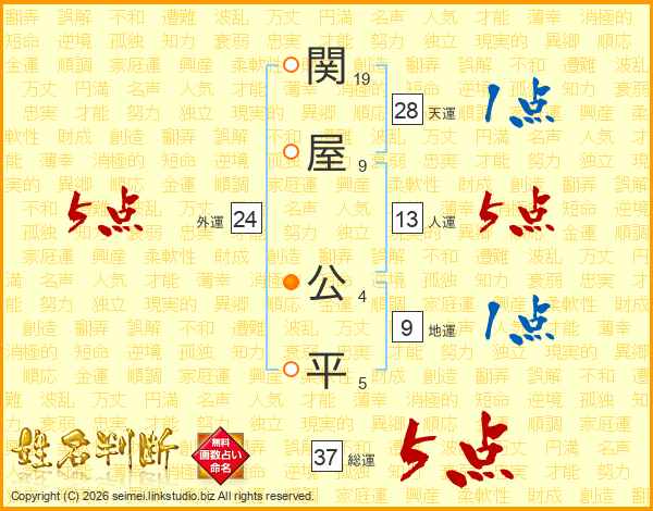 関屋公平さんの総運は37画の5点!