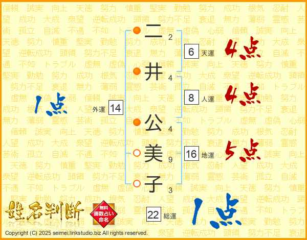 二(2画)井(4画) 公(4画)美(9画)子(3画)