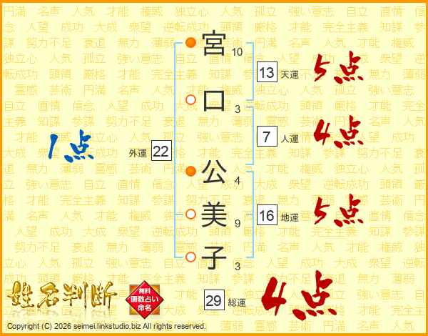 宮口公美子さんの総運は29画の4点!