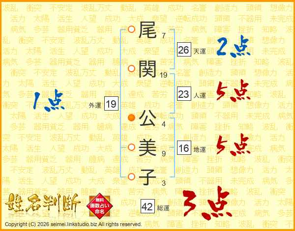 尾関公美子さんの天運は26画の2点!