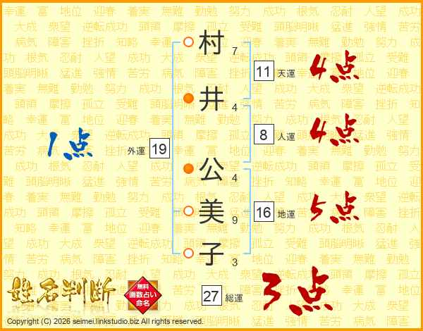 村井公美子さんの天運は11画の4点!