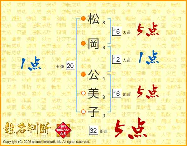松岡公美子さんの総運は32画の5点!