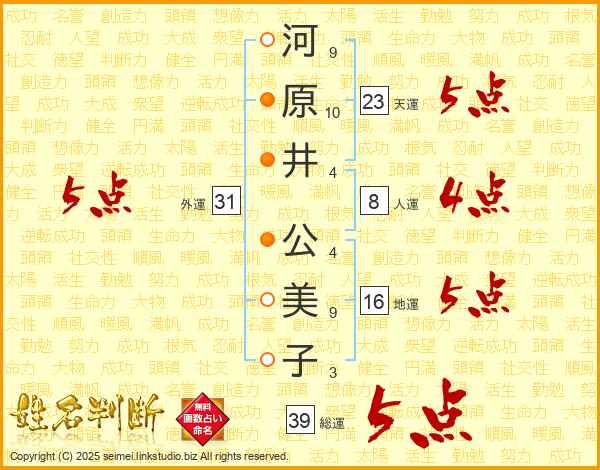河原井公美子さんの総運は39画の5点!