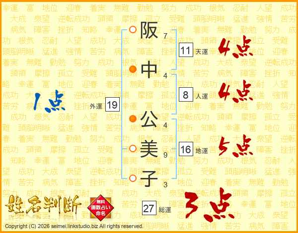 阪中公美子さんの天運は11画の4点!