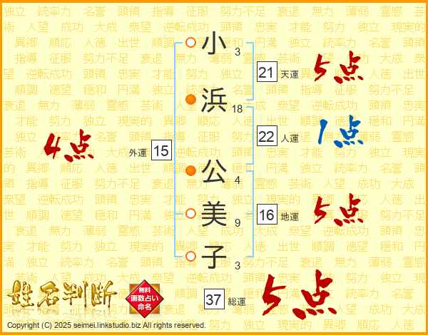 小(3画)浜(18画) 公(4画)美(9画)子(3画)