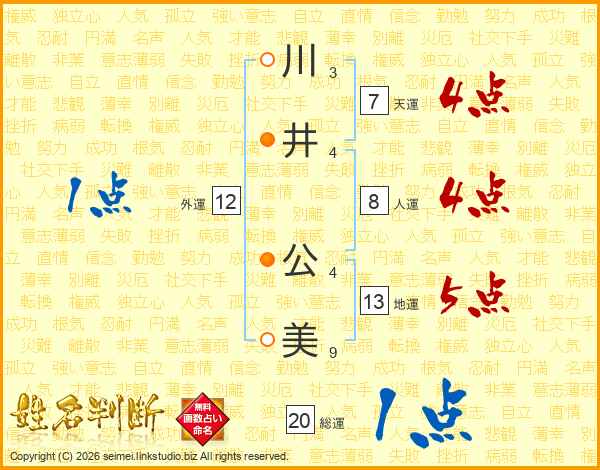 川井公美さんの天運は7画の4点!