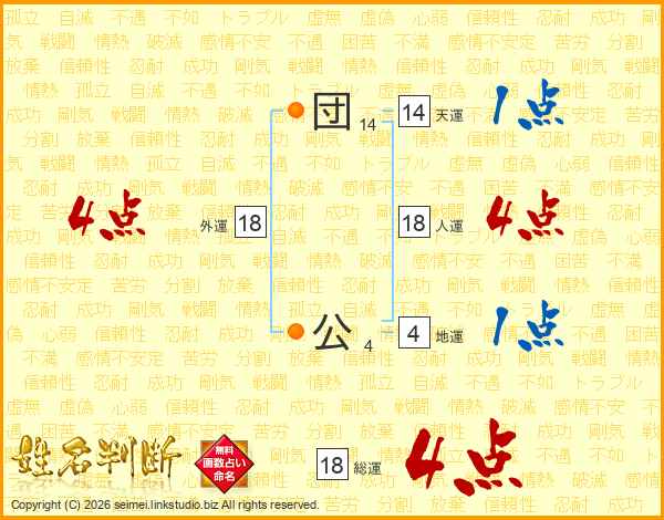 団公さんの総運は18画の4点!