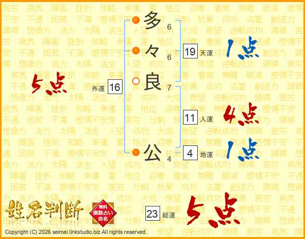 多々良公さんの総運は23画の5点!